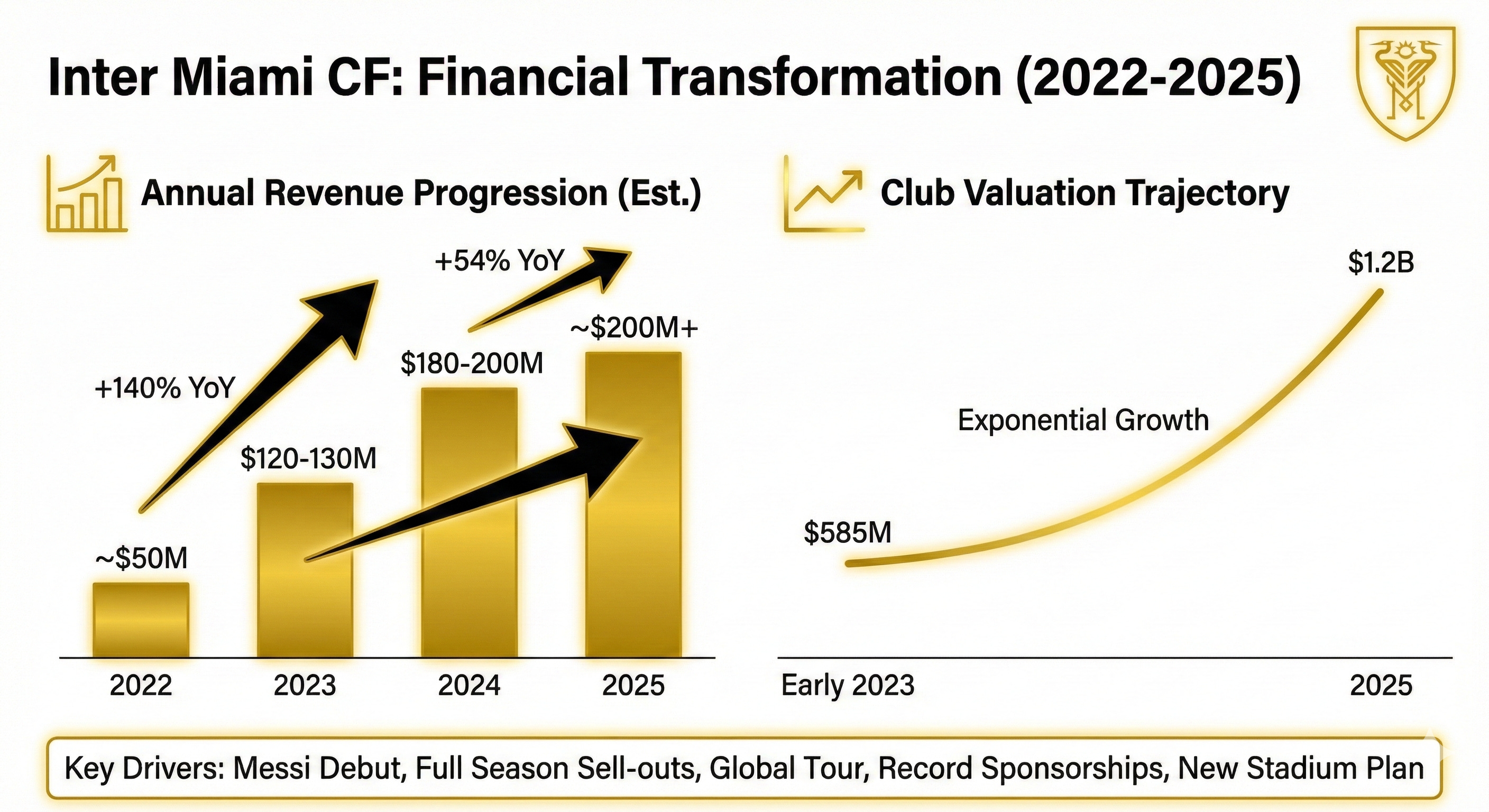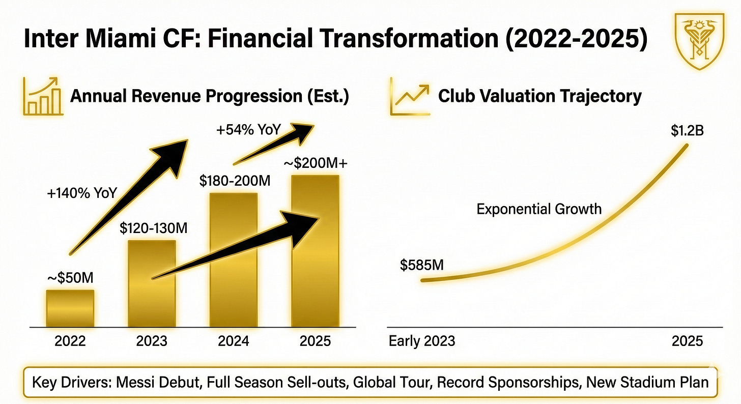Today we are looking at the numbers behind the most significant commercial shift in North American football (or soccer1) history. The arrival of Lionel Messi at Inter Miami CF was not merely a transfer but a macroeconomic event that restructured Major League Soccer’s valuation models and revenue streams. Spanning from his debut in 2023 through the 2025 season, the data reveals a complete shift in the commercial viability of football in the United States2.